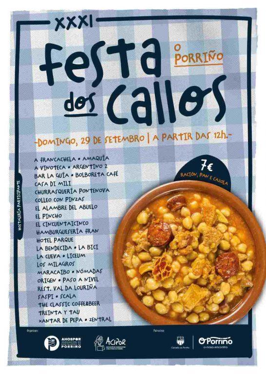 Esta tarde presentouse XXXI Festas dos Callos do Porriño que terá lugar o vindeiro domingo e está organizada por ACIPOR (Asociación de Comerciantes e Industriais do Porriño) e AHOSPOR (Asociación de Hostaleiros do Porriño) en colaboración da Concellería de Cultura. Como cada ano, a Festa dos Callos é o peche de ouro das Festas do Cristo.