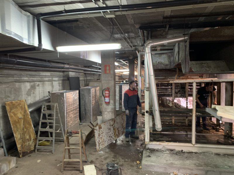 Eva García, acompañada de técnicos municipais, inspeccionou esta mañán o desenrolo das obras de renovación do sistema de climatización da piscina municipal.