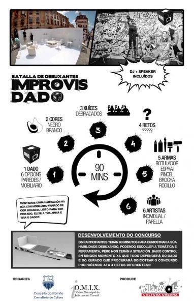 O Concello do Porriño ven de lanzar a convocatoria do concurso “Batalla de Debuxantes: ImprovisDado”, dirixida a debuxantes con idades comprendidas entre os 12 e os 45 anos, de nacionalidade española ou extranxeira. Terán que desenvolver de xeito profesional ou aficionado algunha das seguintes disciplinas artísitas vencelladas coa pintura: ilustración, graffiti, tatuaxe, banda deseñada ou outras técnicas de debuxo de man alzada.