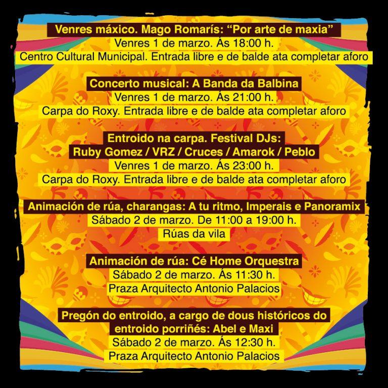chocolatadas, Drags e DJs…todo cabe na Programación do Entroido do Porriño
