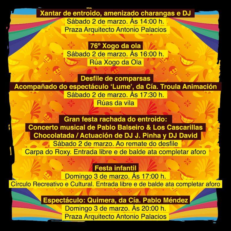 rúa, charangas, o tradicional Xogo da Ola, comparsas, obradoiros, mesmo