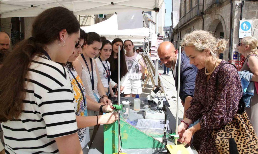 Nesta primeira xornada teñen moita importancia os centros educativos da vila. Cada un deles, conta cun stand na rúa onde defenderán os seus proxectos ante a veciñanza e ante o xurado científico, formado pola madriña, Verónica Salgueiriño, a farmacéutica, Celia Diz, e o enxeñeiro industrial da CTAG, Julio Sánchez. Eles, co voto ponderado do público, elexirán esta tarde cal é o proxecto gañador.