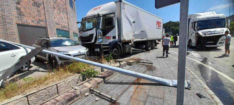Outro sinistro foi a colisión entre dos vehículos pesados no Polígono da Granxa na que tamén resultaron afectados outros vehículos como consecuencia do derrubamento dun poste do alumeado público. Neste suceso tamén acudiron axentes da Policía Local do Porriño para levantar o correspondente atestado por danos.