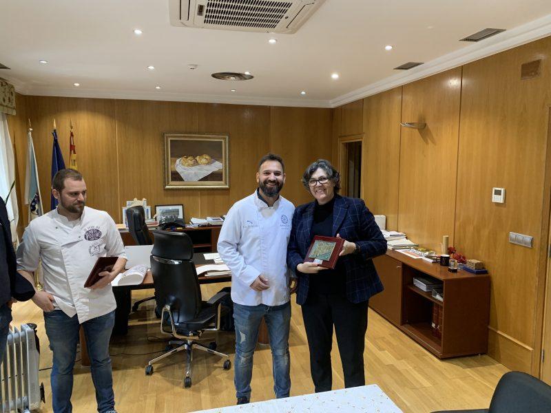 Ambos foron recibidos nunha recepción na Alcaldía por Eva García de la Torre e polos concelleiros de Comercio, Sergio Casal e de Turismo, David Alonso como consecuencia de ser galardoados pola “Ruta Española del Buen Pan” entre os mellores de Galicia e entre as OITENTA MELLORES PANADERÍAS DE ESPAÑA.