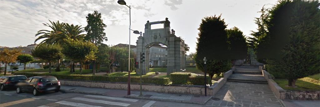 A estrutura foi proxectada polo famoso arquitecto porriñés Antonio Palacios no ano 1919 e estaba composto por dúas estruturas diferentes, unha de granito moi traballado e outra de ferro forxado e cristal. Con todo, no traslado perdeuse a parte de ferro. Regresando ao traxecto orixinal, o peregrino deberá continuar pola mesma rúa ata atoparse coa capela de San Bieito, onde antigamente se realizaba o mercado da vila e onde chegou a situarse unha pequena alameda.