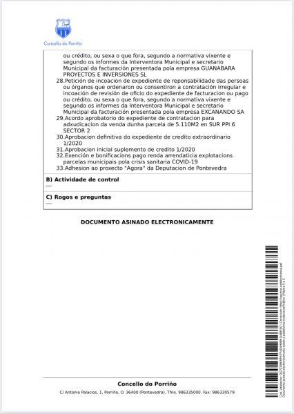 Este mércores 29, ás 18 horas, comezará o pleno ordinario correspondente ao mes de xullo. A renuncia de Pedro Ocampo Cardalda, a continuar como concelleiro e voceiro municipal do grupo EU SON será o primeiro asunto da orde do día que adxuntamos.