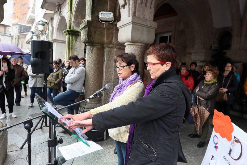 Eva García de la Torre, quen interviu no acto, o mesmo que a concelleira de Igualdade, subliñou a “xustiza” desta xornada de paro feminino e salientou a importancia da muller en todos os eidos da sociedade, dende a cultura, á economía, dende o ensino, ao benestar, dende a historia á xustiza, dende os trabalos remunerados a aqueles que non o están e esixiu que “se nos valore igual que os homes”.