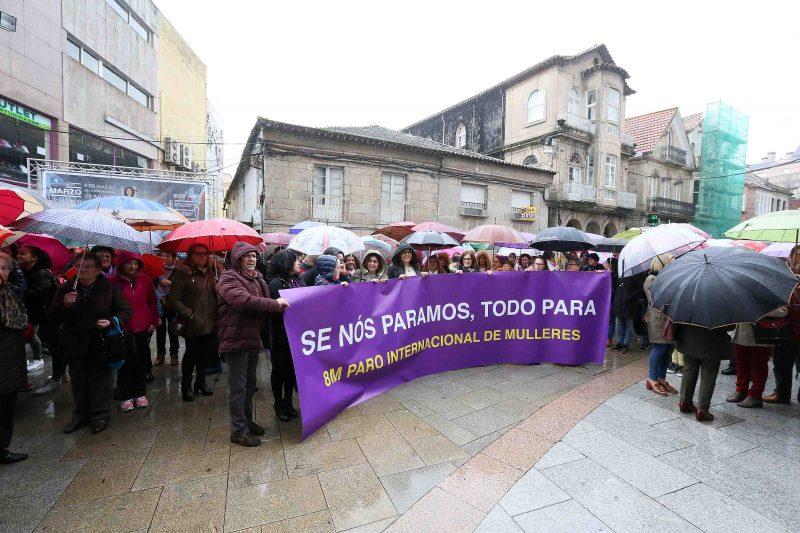Centos de persoas saíron á rúa no Porriño para dar o seu apoio á folga total e aos paros parciais convocados este xoves, día 8 de marzo, coincidindo co ‘Día Internacional da Muller’ e que levaron a manifestarse en toda Galicia a ducias de milleiros de cidadáns.