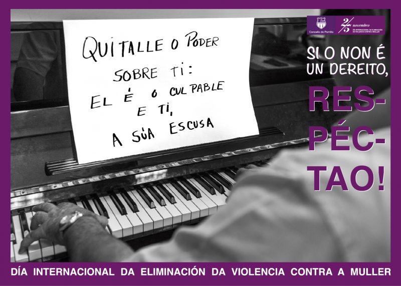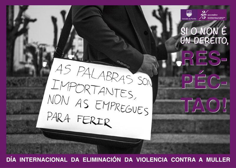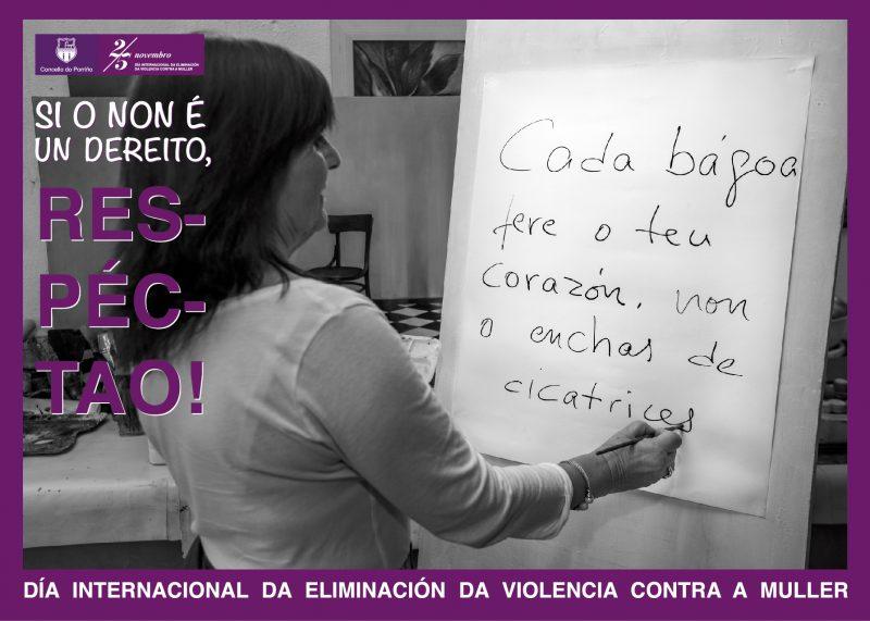 A concelleira de Benestar e Igualdade, Soledad Girón subliña que neste 25 de novembro, ao contrario que o do ano pasado, “no que buscamos a implicación de diferentes eidos da sociedade do Porriño, dende o deporte, pasando pola educación ou o asociacionismo, queríamos que houbese unha participación anónima salientando que todos temos que comprometernos na loita contra a violencia de xénero, e si en 2016 o noso lema era ‘O Non é un dereito’, este 2017 continuamos con ‘Si o Non é un dereito, respéctao”.