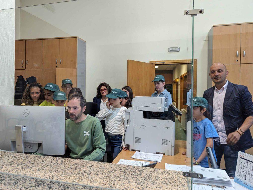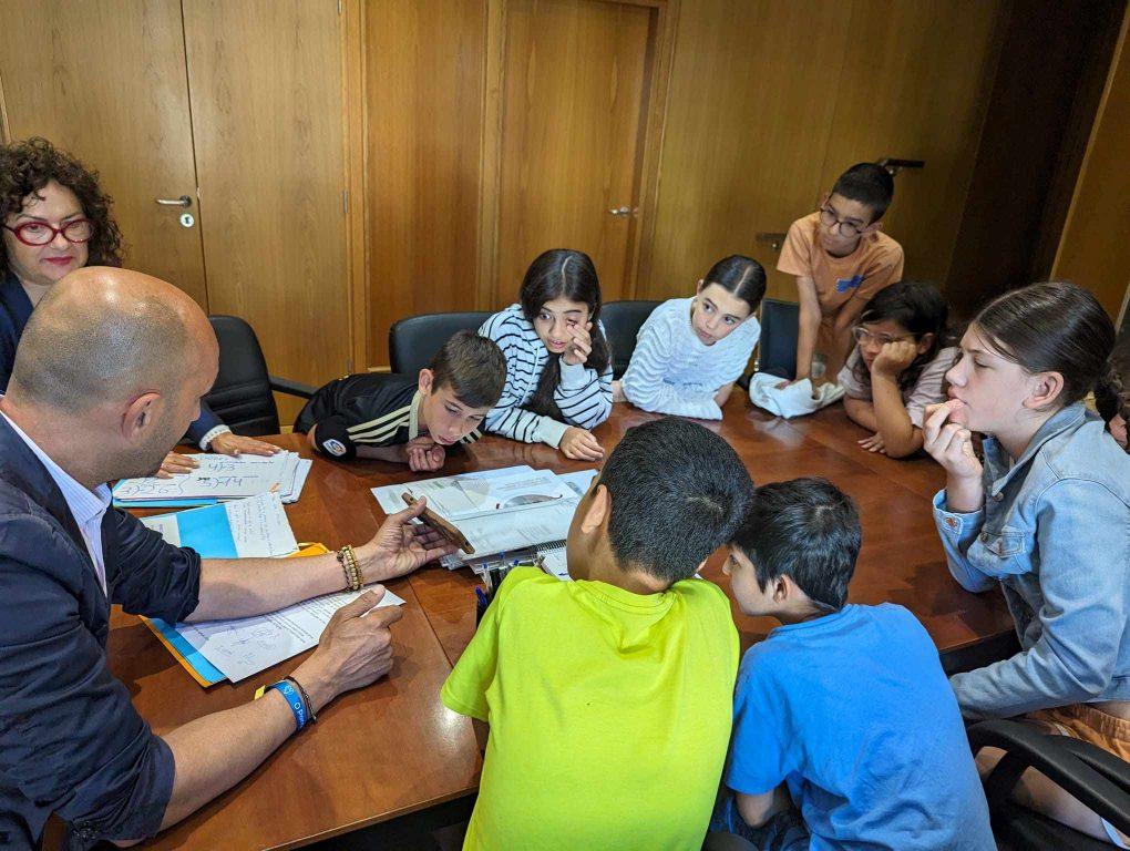 Alumnos e alumnas de 6º de Primaria do CEIP Fernández López visitan a Casa Consistorial para rexistrar unha proposta de mellora para a veciñanza do Porriño, un traballo escolar que espertou o interese do alcalde, Alejandro Lorenzo.