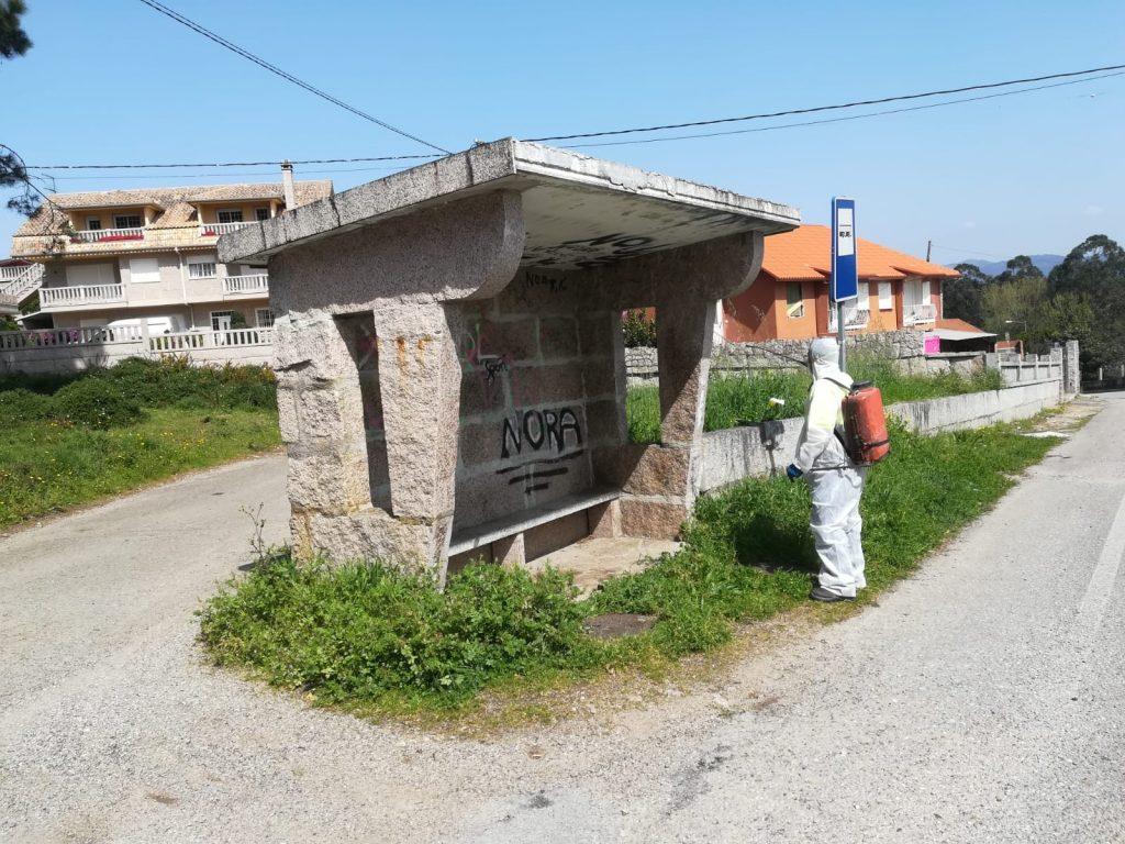 Conforme as instruccións do Comité Municipal de Seguimento creado polo Concello do Porriño polo estado de alarma a causa do coronavirus, actuouse sobre beirarrúas, edificios, marquesinas, contenedores e outro elementos do mobiliario urbano.