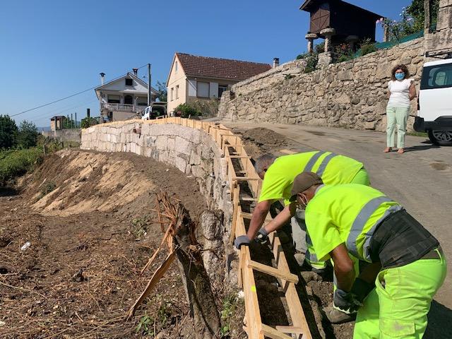 Por outra banda, a concelleira de Vías e Obras tamén comprobou o desenvolvemento dos traballos para levantar un muro de contención de 47 metros de perímetro no lugar de Carreira, en Cans que se está a executar polo seu departamento. "Trátase de resolver o perigo que existía para o acceso ás vivendas pola caída dunha parede, atendendo a unha petición da veciñanza", manifestou Lourdes Moure.
